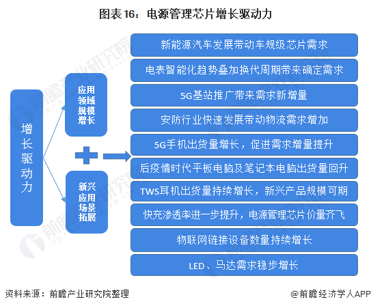 由于应用领域规模增长和新兴应用场景的拓展,预计未来电源管理芯片行业将迎来爆发式增长。应用领域规模增长及新兴应用场景的拓展是电源管理芯片主要的增长驱动力。