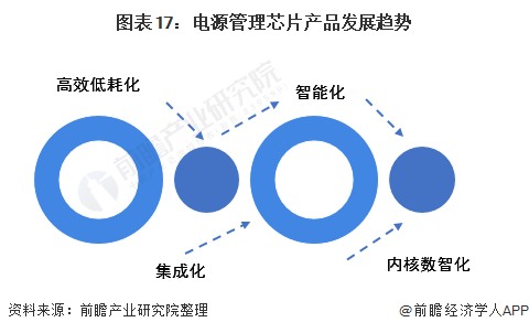 未来,受下游应用领域需求的影响,不同领域对电源管理芯片的需求方向发生变动。其中在电源领域,电能转换效率和待机功耗永远是核心指标之一,通过更加先进的电路拓扑技术、更低导阻的功率器件技术、更高开关频率技术、更精巧的高压启动技术等实现电源管理芯片及其电源系统的高效率和低功耗要求。在消费电子领域,电源的轻薄短小一直都是优化用户体验的重点需求,具有更小的体积、更高的集成度、更少的外围器件的电源管理芯片成主要的需求方向。电源管理芯片的输入和输出均为模拟信号,引入数字控制器内核实现在同类常规电源芯片中难以实现的内核数字化功能,另外电源管理芯片的智能化是大势所趋。