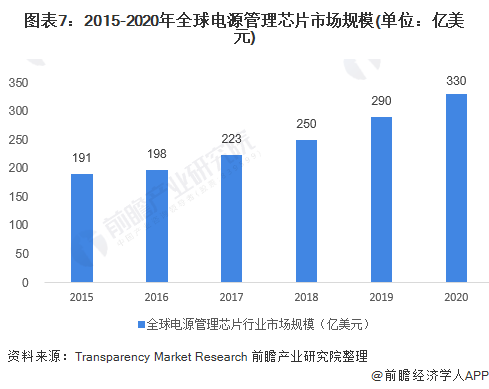 电源管理芯片作为模拟芯片的重要领域,市场规模不断增加。2020年全球电源管理芯片市场规模约330亿美元,根据Transparency Market Research电源管理芯片拥有广阔的市场空间,在高效低耗化、集成化、内核数字化和智能化成为新一代电源管理芯片技术发展的趋势的推动下,电源管理芯片需求的也将实现巨大増长和升级。未来几年,全球电源管理芯片将保持10%左右的增速持续增长,则预计到2026年全球电源管理芯片将达570亿美元。