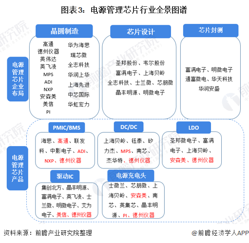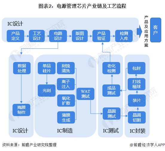 从产业链条来看,电源管理芯片上游为晶圆制造,封装测试等环节,下游为经销商,模组厂及整机厂商等。