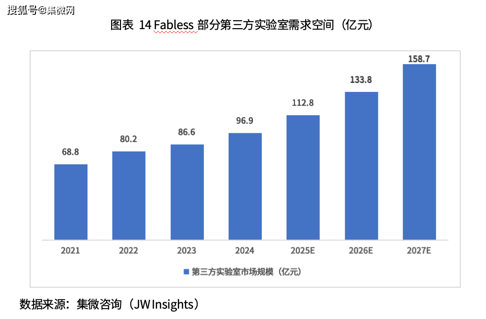 根据集微咨询测算,2025年中国第三方实验室服务市场规模为112.8亿元,预计2027年市场有望达到158.7亿元。