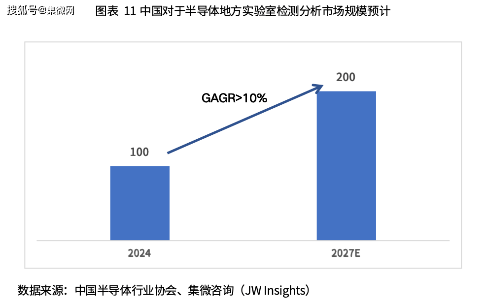 随着国内半导体产业的发展,国内半导体第三方实验室检测分析市场环境日益成熟,市场竞争也日趋激烈。根据中国半导体协会数据,预计到 2024 年,我国半导体第三方实验室检测分析市场规模将超过 100 亿元,2027 年行业市场空间将有望达到 180-200 亿元。