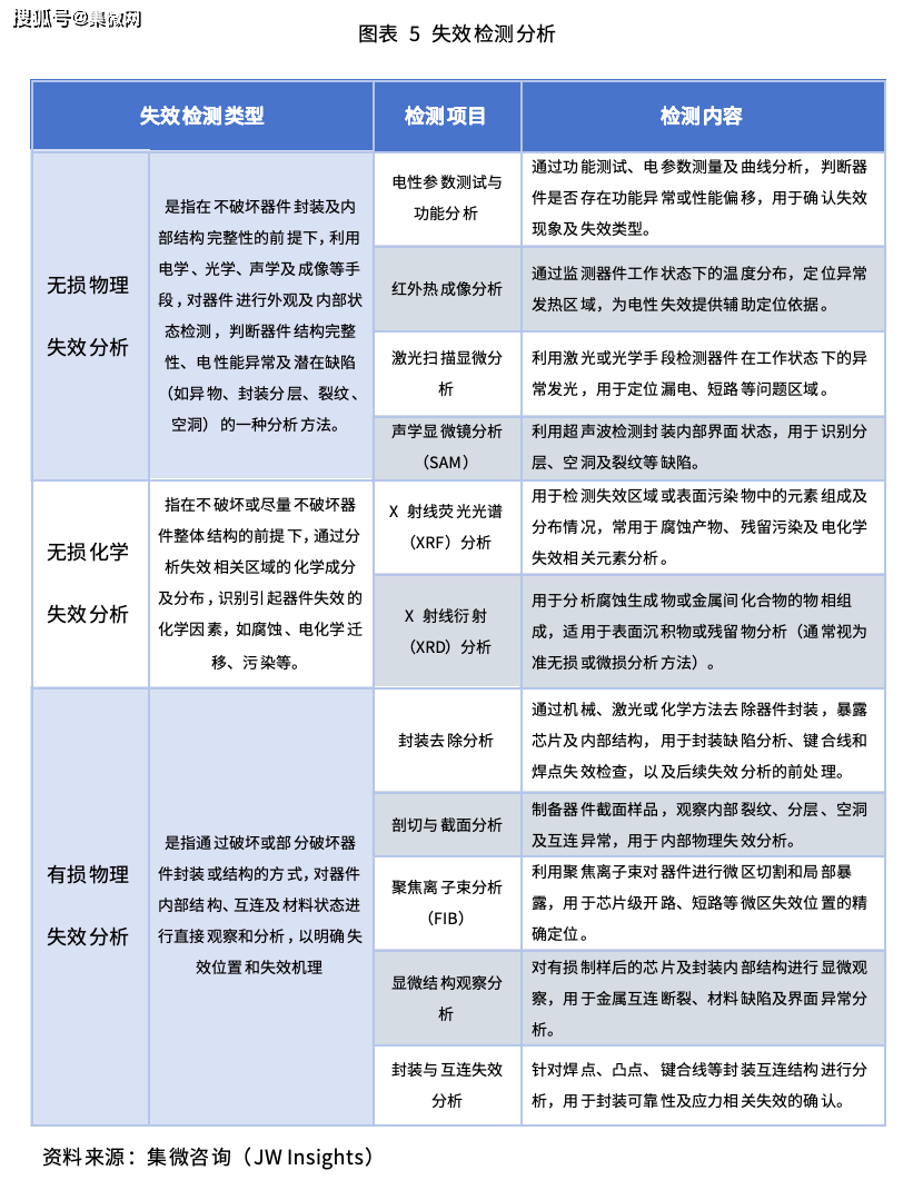第三方实验室检测服务主要包括功能测试和物理验证等,这部分通常由第三方实验室为芯片设计企业和晶圆代工企业提供服务,主要涵盖可靠性分析(RA)、失效分析(FA)、材料分析(MA)、信号测试、芯片线路修改等,其中比较重要的包括可靠性分析、失效分析、材料分析等。相较于晶圆测试、成品测试等后道检测,可靠性分析、失效分析以及材料分析等实验室检测则贯穿半导体全产业链,检测对象包括产业链任一环节、量产前或量产后的样品,帮助企业加快研发进度、改进生产工艺。